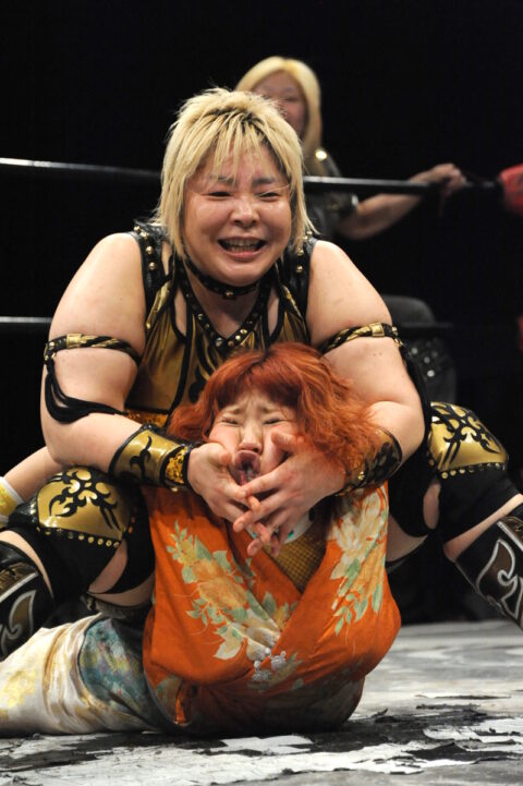 そしてセミファイナル、希月あおい引退ロード。ここで希月が選んだ戦いは、全力決死の激闘ではなく、いつも以上に、いや、もう過去最高にはじめ飛んだ「300%の希月あおい」をぶつけることでした。アジャ・コングさえも翻弄し、その世界観に巻き込む希月あおい。アジャの試合後のマイクでも「これからもあなたの幸せなプロレスを、後輩たちに伝えていってやってください。わたしはもういいけど」という暖かく冷たい言葉が投げかけられていました。