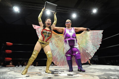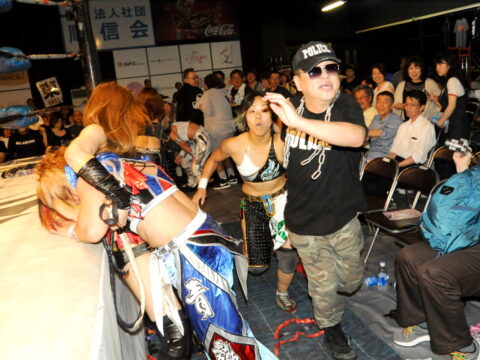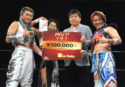 メインイベントは予想以上の大乱戦、大混戦。セコンドが入り乱れ凶器と怒号が飛び交うこの戦いでしたが、最後に勝ったのは雪妃への集中砲火に成功したMission K4でした。この真っ向勝負からの勝利を収めたMK4は、勢いを駆ってそのままMVPも受賞! 本大会をハッピーエンドで締めてくれました。