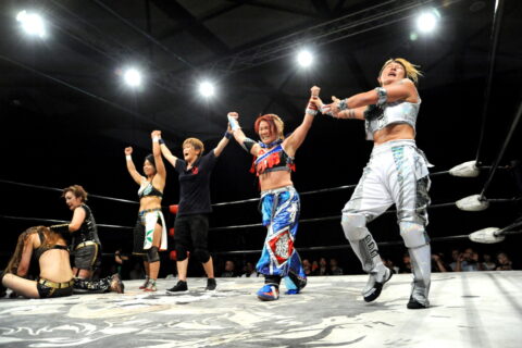 尾崎魔弓&桜花由美&●雪妃魔矢 vs ○加藤園子&AKINO&小林香萌