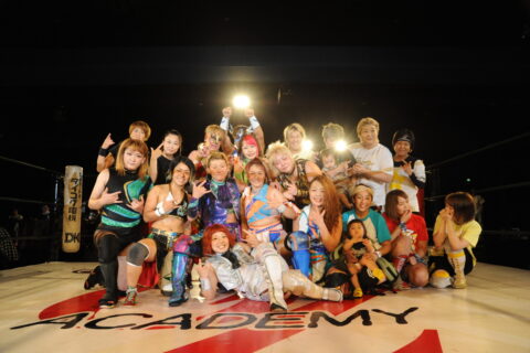 そしてメインイベント。謎のnoki-Aを加えた6人タッグのジャパニーズルチャは華麗かつパワフルな大打撃戦&大空中戦に!AKINOの20周年にふさわしいスペクタクルな試合となりました。年齢層も10代から40代までが一同に会したこの試合ですが、最後は本大会の主役・AKINOが猛攻を見せるnoki-Aからフランケンシュタイナーで3カウント!見事記念興行のメインイベントを勝利で飾りました。 大会最後のマイクでは自らが怪我で引退を覚悟したときの思い出を語り、「続けていてよかった!」と万感の想いを皆に伝えたAKINO。「これからまだまだやります!」と力強いコメントで、大成功の記念大会はハッピーエンドとなりました。 AKINO選手、20周年本当におめでとうございます!