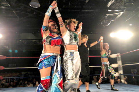 第三試合はセコンド乱入を繰り返す正危軍に対し、米山が同士討ちからの丸め込みという頭脳プレーで勝利!トーナメント二回戦へのコマを進めました。これで二回戦進出決定は尾崎魔弓と米山香織の二人となります。