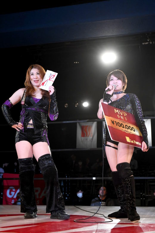 そして迎えたメインイベント、場内を混乱の渦に巻き込んだ正危軍vs志田&倉垣の一戦です。志田の王者としての強さと倉垣の桁外れのパワー。無敵とも思えるこのチームですが、尾崎魔弓がセコンドについた正危軍相手ではやはり人数で分が悪かったのか、最後は尾崎のオザキックからの桜花のビッグブーツという完膚無き連携で正危軍が勝利を収めました。