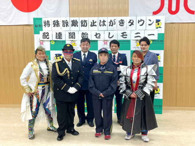 さらに何と今回は特殊詐欺防止の啓発動画に選手が出演しております。アジャコングが一日警察署長、尾崎魔弓が一日郵便局長に任命されて大活躍?したとのことで、当日の模様をYoutubeにてお届け致します!