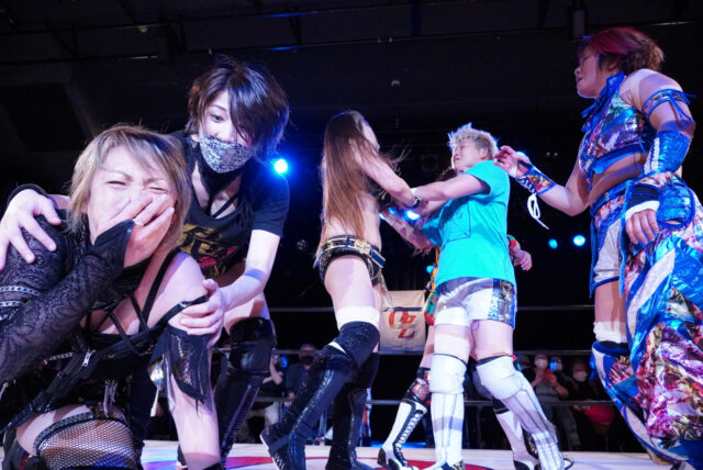 ここでリングに桜花も登場、正危軍勢揃いとなる。