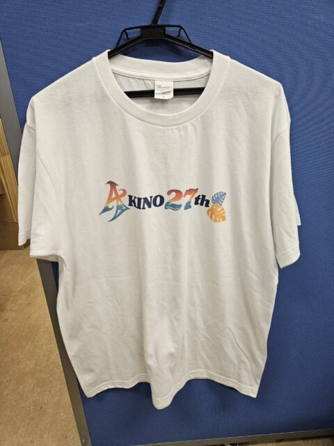 いよいよ今週末は夏の沖縄大会!ここでAKINO選手のデビュー27周年記念Tシャツの発売が決定しました。沖縄大会での発売に相応しい夏を感じるデザインです。どうぞお早めにお買い求めください!