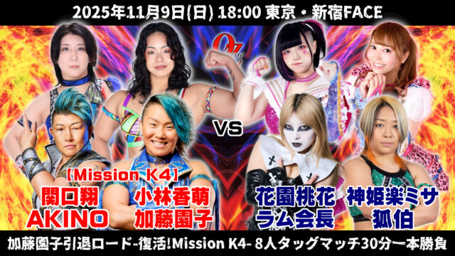【Mission K4】加藤園子&AKINO&小林香萌&関口翔 vs ラム会長&狐伯&花園桃花&神姫楽ミサ