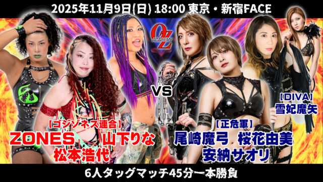 【ゴジゾネス連合】松本浩代&山下りな&ZONES vs 【正危軍】安納サオリ&尾崎魔弓&桜花由美 with【DIVA】雪妃魔矢