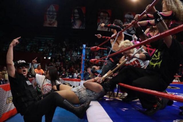 このポリスと思わしき人物は6人タッグの試合に浜田文子チームのセコンドとして登場。会場のヒートを買いながら悪辣なファイトを繰り広げた模様です。