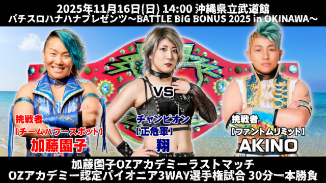 【25.11.16沖縄】全カード決定!加藤園子OZラストマッチは翔の3WAYタイトルにAKINOと挑戦!