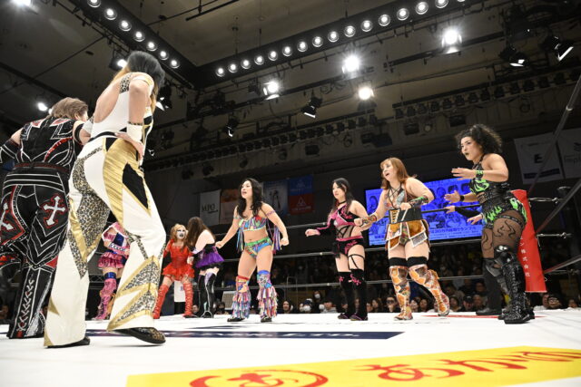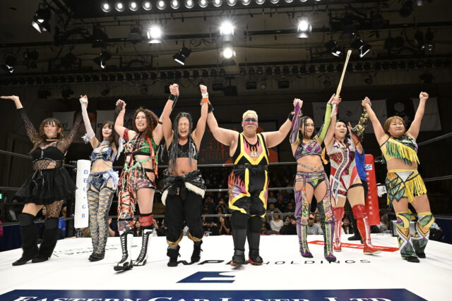 ◯アジャコング&永島千佳世&野崎渚&志田光 vs 松本浩代&●山下りな&VENY&上福ゆき