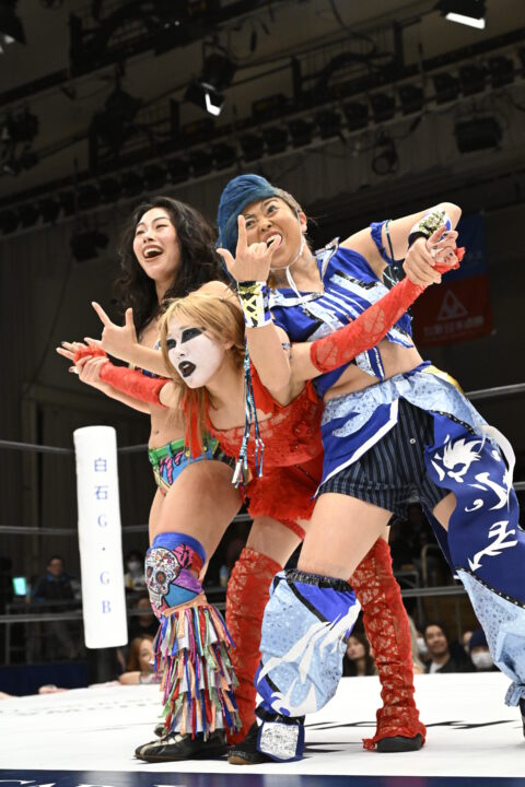 ◯加藤園子&AKINO&青木いつ希 vs 【正危軍】尾崎魔弓&安納サオリ&●翔 with【DIVA】雪妃魔矢