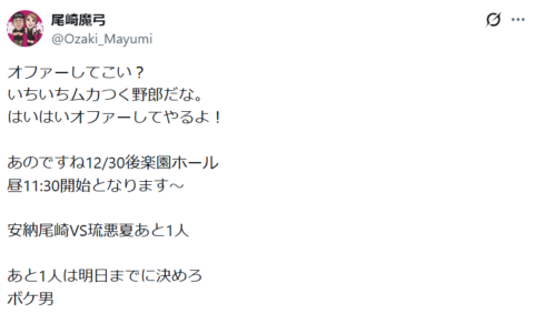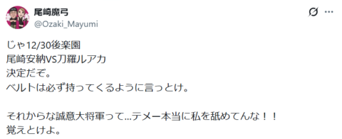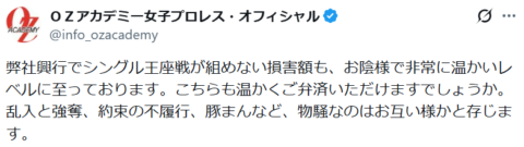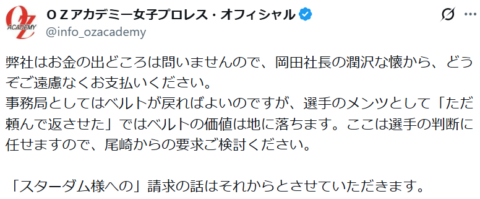 10.19横浜武道館での勝利でも返却が叶わなかった”失われたOZの至宝”無差別級ベルト。尾崎と安納が先日のYoutubeでスターダム岡田社長にその奪還戦を申し入れ、X上では岡田社長との舌戦が繰り広げられました。