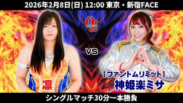 1月のトーナメントで無差別級への挑戦が決定した松本浩代。その決戦となるタイトル戦を含む、豪華全5試合が決定しました!オープニングは神姫楽ミサの罰ゲーム前説、しかもその神姫楽の対戦相手はOZマット初参戦の凛です!さらにこの日の試合後はクラブ尾崎のリアルイベントも開催、どうぞたっぷりとご期待ください!
