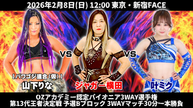■セミファイナル:OZアカデミー認定パイオニア3WAY選手権 第13代王者決定戦 予選Bブロック 3WAYマッチ30分一本勝負