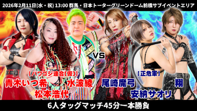 【パワゴジ連合(仮)】松本浩代&水波綾&青木いつ希 vs 【正危軍】安納サオリ&尾崎魔弓&翔