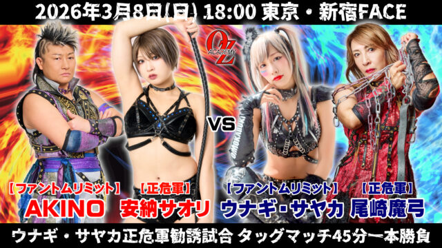 【26.3.8新宿】ウナギ・サヤカ正危軍勧誘試合など全5試合が決定!